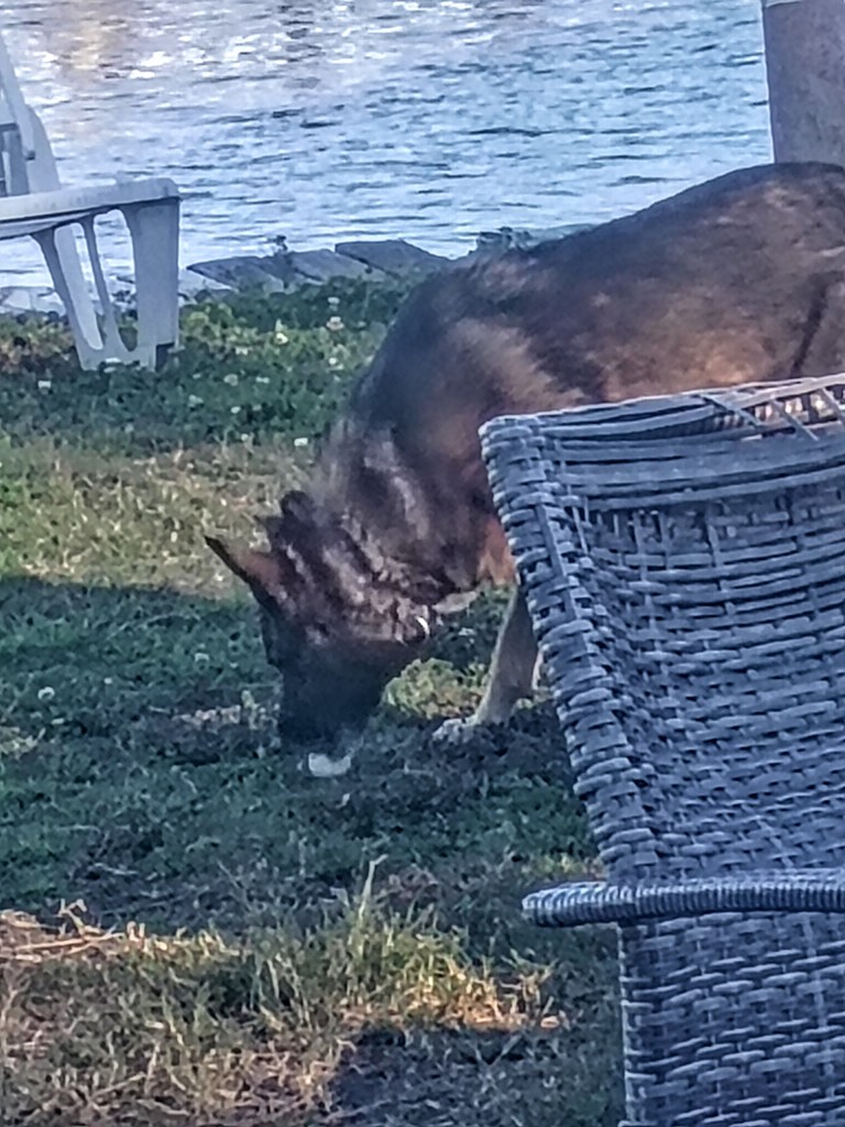 Yote’s Egg Heist: Busted at the Bait Shop!Never a dull moment when your best friend tags along to work every day—she keeps the marina vibes alive with her endless energy. Today, unbeknownst to Yote, I caught her red-pawed (or should I say egg-beaked?) pilfering fresh hen eggs from under the woodpile right outside the bait shop. From my vantage point inside the bait shop, peering through the window amid the shiners and tackle, I watched Yote nose around the woodpile like a furry detective on a mission. Hens love hiding eggs around our Florida riverside spot, turning it into a natural treasure hunt—until my trailblazing pup turned thief. She snatched one delicately, just like those gentle giants who “protect” eggs by swiping them whole, then trotted off oblivious to my giggles. Blessed that she is my daily sidekick through dock checks, customer chats, and Black Creek views, turning routine marina days into adventures. Her antics, from trail trash feasts to this egg raid, remind me why she’s irreplaceable—pure joy wrapped in mischief that beats any bait shop boredom. Blessed to share these moments . She can have as many eggs as she like we definitely don’t need anymore chickens around here and the sailors on the dock are egged out,