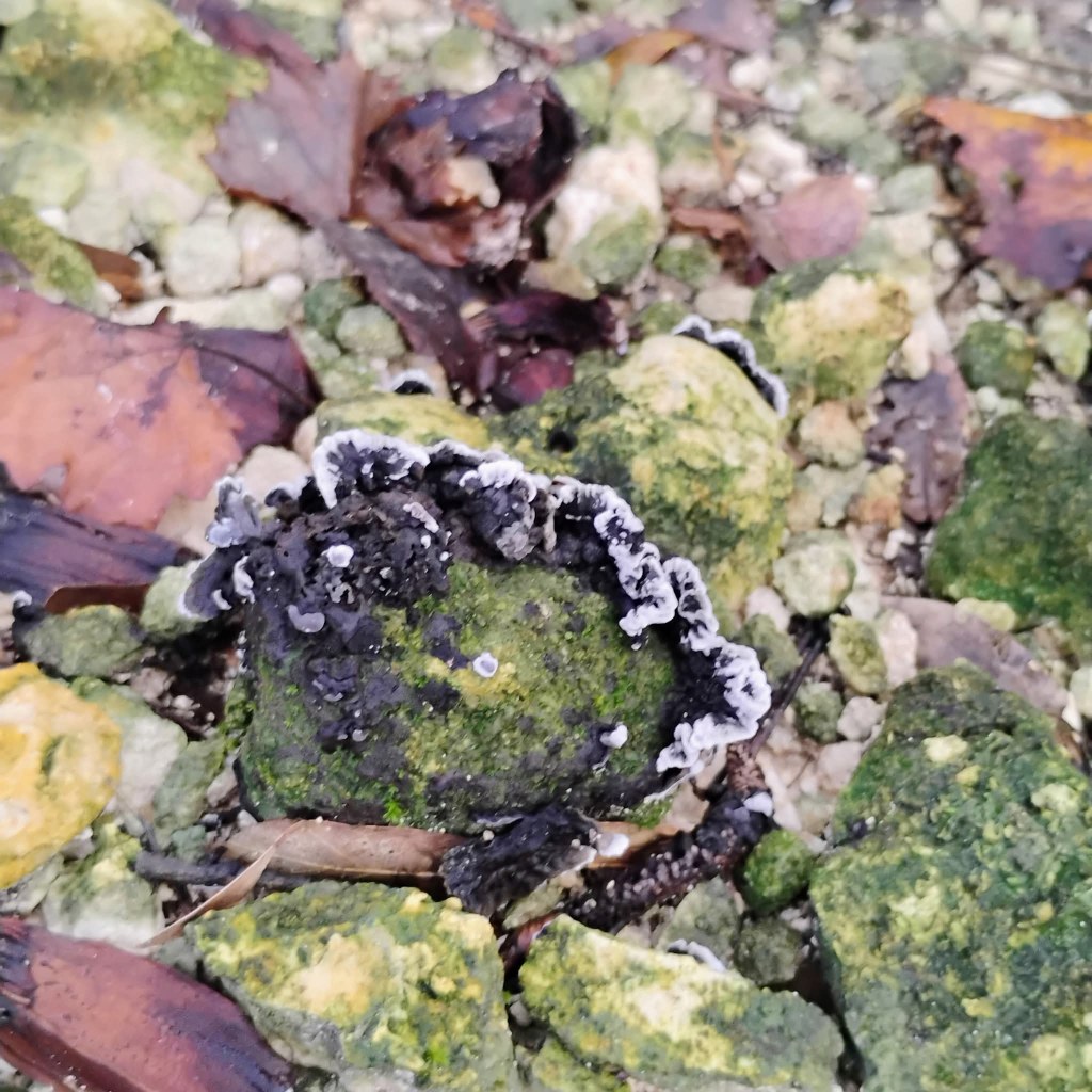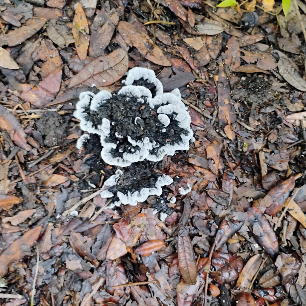 At first glance, you might mistake it for something burnt, a clump of hardened earth, or even a piece of old leather. But upon closer inspection, you see the intricate, wavy white edges contrasting with its dark, often debris-laden center. It grows in beautiful rosette or fan-like clusters directly on the forest floor, frequently incorporating pine needles and small stones into its sturdy structure.