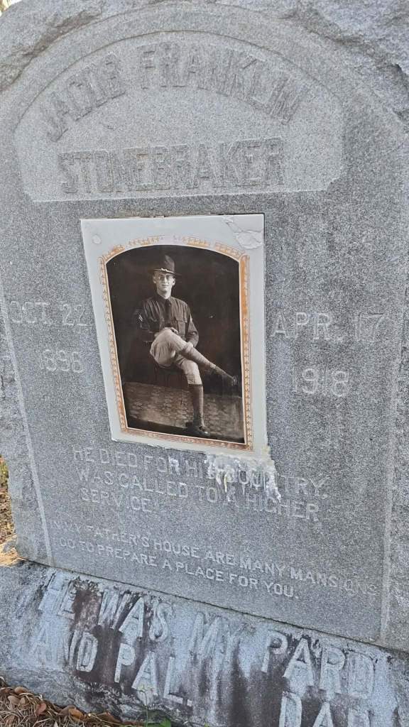 Jacob’s portrait, preserved on the stone, shows him in his “doughboy” uniform—a sharp contrast to the tragic reality of his early death at just 21 years old.
