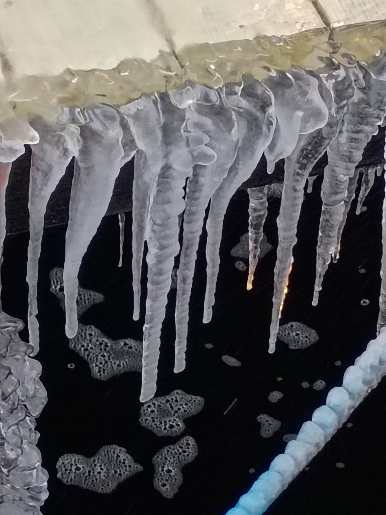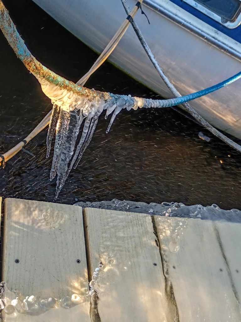 A Survival GuideWell, it finally happened. Hell has officially frozen over, and apparently, it took the Florida Intercoastal with it.I woke up this morning, stepped onto the lanai with my usual “it’s probably 75 degrees” optimism, and was met with a sight that shouldn’t exist in a state where the official bird is a mosquito: Icicles. On a boat. In Florida.Based on the photos I just took (and the fact that my flip-flops are currently fused to the dock), here is the state of the union:1. The Boats are Now Artisanal Glass SculpturesLook at that first photo. That’s not a nautical rope anymore; it’s a giant, salty Swarovski crystal.